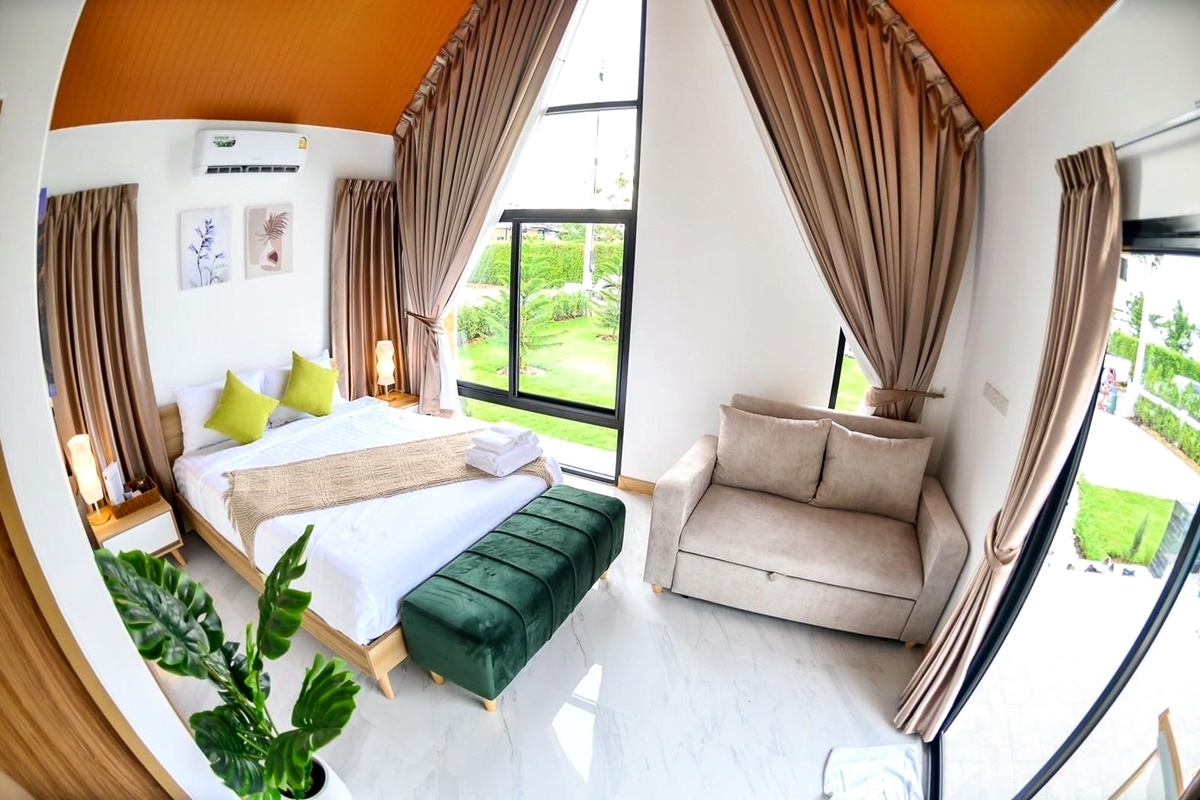 - ห้องที่ 1 มี เตียง 5 ฟุต 1 เตียง และโซฟาเบดใหญ่ 1 ตัว