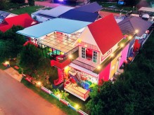 บ้านพักตั้งอยู่ใจกลางโอโซนบริสุุทธิ์ มีสไลเดอร์ยักษ์เป็นจุดเด่นของบ้าน มีขนาด ขนาด 8 ห้องนอน 8 ห้องน้ำ แบ่งออก เป็น 3 หลังในพื้นที่เดียวกัน ประกอบด้วยหลังใหญ่ 4 ห้องนอน และ หลังเล็ก 2 หลังๆ ละ 2 ห้องน...